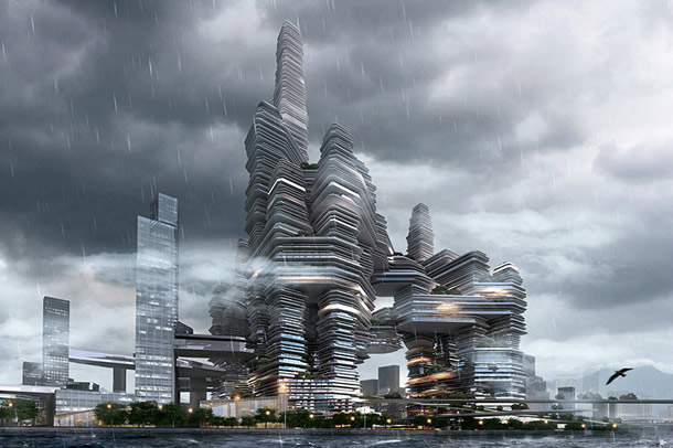 Gelişen teknolojiyle bu yüksek yapılar hem dikey hem de yatay yönde iç içe geçen doğal yeşil katmanlar şeklinde tasarlanacaktır. Bu ileri teknoloji yapılarda, güneş, yağmur ve rüzgâr gibi doğal kaynaklardan binanın her bir katmanında geri dönüşümlü olarak yararlanmak mümkün olacaktır. Çok katlı amorf yapılaşma, kentlere hem yatay hem de dikey boyutta daha fazla ortak yeşil sosyalleşme alanları sunacaktır. Bu bağlamda İstanbul’daki Kanyon AVM’nin avlusu bu yeni nesil sosyalleşme mekânının tipik örneği aslında. Gölgeli alanlardaki kafeleri, süs havuzu ve yükselen katların açık koridorlarla bu ortak avluya görsel anlamda bağlanması, her kademede açık havanın ve yeşilin algılanmasını mümkün kılıyor. Klasik mahalle kültürü, yerini bu yeni nesil kentsel sosyalleşme alanlarına bırakıyor. Bu gelişmenin daha büyük ölçekli olarak devam edeceğini ve gelecekteki temel ortak kentsel yaşam alanlarını oluşturacağını varsayabiliriz. Kozmopolit mega kentlerde güvenli ve her anlamda kaliteli ortak mekanları paylaşabilme, insanların gittikçe artan orandaki en büyük ihtiyacı olmaya devam edecektir.