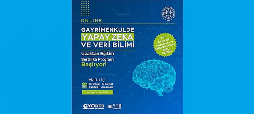 Gayrimenkul ve Gayrimenkul Yatırım Ortaklığı Derneği (GYODER) ile Yıldız Teknik Üniversitesi (YTÜ) Teknopark iş birliği ile başlayacak ‘Gayrimenkulde Yapay Zekâ ve Veri Bilimi’ programı, Türkiye’de bu alanda düzenlenecek ilk sertifika programı olacak. Bu yenilikçi uzaktan eğitim sertifika programına katılanlar, gayrimenkul teknolojisinde kullanılan ‘yapay zekâ’, ‘makine öğrenimi’ ve ‘veri biliminde ortaya çıkan teknolojiler’ hakkında bilgi sahibi olacak.