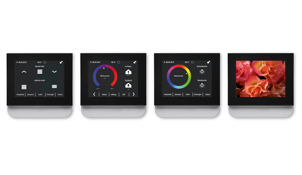KNX Touch Control yenilikçi tasarımı ve görsel kalitesi ile hem şık bir aksesuar olarak kullanılıyor, hem de aydınlatmadan iklimlendirmeye, müzik sisteminden panjurlara kadar odalardaki tüm parametreleri detaylandırarak kullanıcısına tek tuşla konfor sağlıyor. KNX Touch Control, kullanıcı isteğine göre farklı renklerde ve materyallerde tasarlanabiliyor.