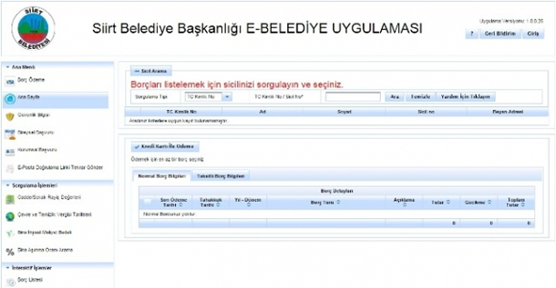 Siirt Belediyesi ’Akıllı kent’ projesi kapsamında e-belediyecilik uygulamasına geçti. Siirt Belediyesi ’Akıllı kent’ projesi kapsamında resmi internet sitesi www.siirt.bel.tr üzerinden e-belediyecilik sistemini hizmete geçirdi. Yeni sistemle belediyenin internet adresinden kredi kartı ile su faturası ödemenin yanı sıra, su borcu sorgulaması, bireysel başvuru, kurumsal başvuru, cadde ve sokak rayiç bedeli, çevre ve temizlik vergisi, bina inşaat maliyet bedeli, bina aşınma oranı ve belediyeye olan tüm borçların sorgulama hizmetlerinden faydalanabilecek.