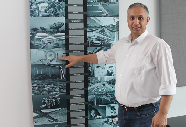 Demir, “Türkiye’de yatırım yapmak için uzun vadede önemli planlarımız var. Kısa vadede bir üniversite kurma planımızın yanı sıra daha sonra bir baraj projemiz olacak. Bu projenin başlaması için izinleri bekliyoruz. Her şey yolunda giderse yılsonunda veya 2015’in ilk aylarında çalışmalara başlayacağız. Bunların dışında maden ocaklarımız var. Onun için de izinleri bekliyoruz. Biz aslında ağırlıklı olarak hizmet veren bir firmayız. Bütün sektörlerde 200’e yakın müşteriye mühendislik hizmeti veriyoruz. Manchester’da bir motor ailesini dizayn ettik. Şu anda bunu satın almak isteyen müşteriler var ama görüşmeler sürüyor. Onun dışında İsviçre’de trafik sistemleri, bir tane tünel ve dijital telefon sistemleri projemiz devam ediyor. Bunun en önemli özelliği projesini yürüttüğümüz çalışmalarda telefonun dinlenmemesidir. 16 haneli kodla şifreleniyor. İsviçre’de güvenlik alanlarında, polis merkezlerinde de kullanılıyor. İsviçre’de 4 büyük kantonun ihalesini kazandık. Bu kantonlara tüm altyapının mühendislik hizmetlerini biz kurduk.